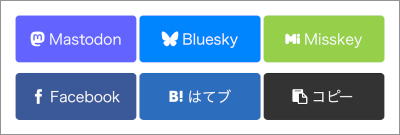 このブログは、各記事の一番下にシェアボタンが設置されていて、何のボタンを設置するかは私が選ぶことができます。2025年現在の画面(モバイル版)はこんな感じです。